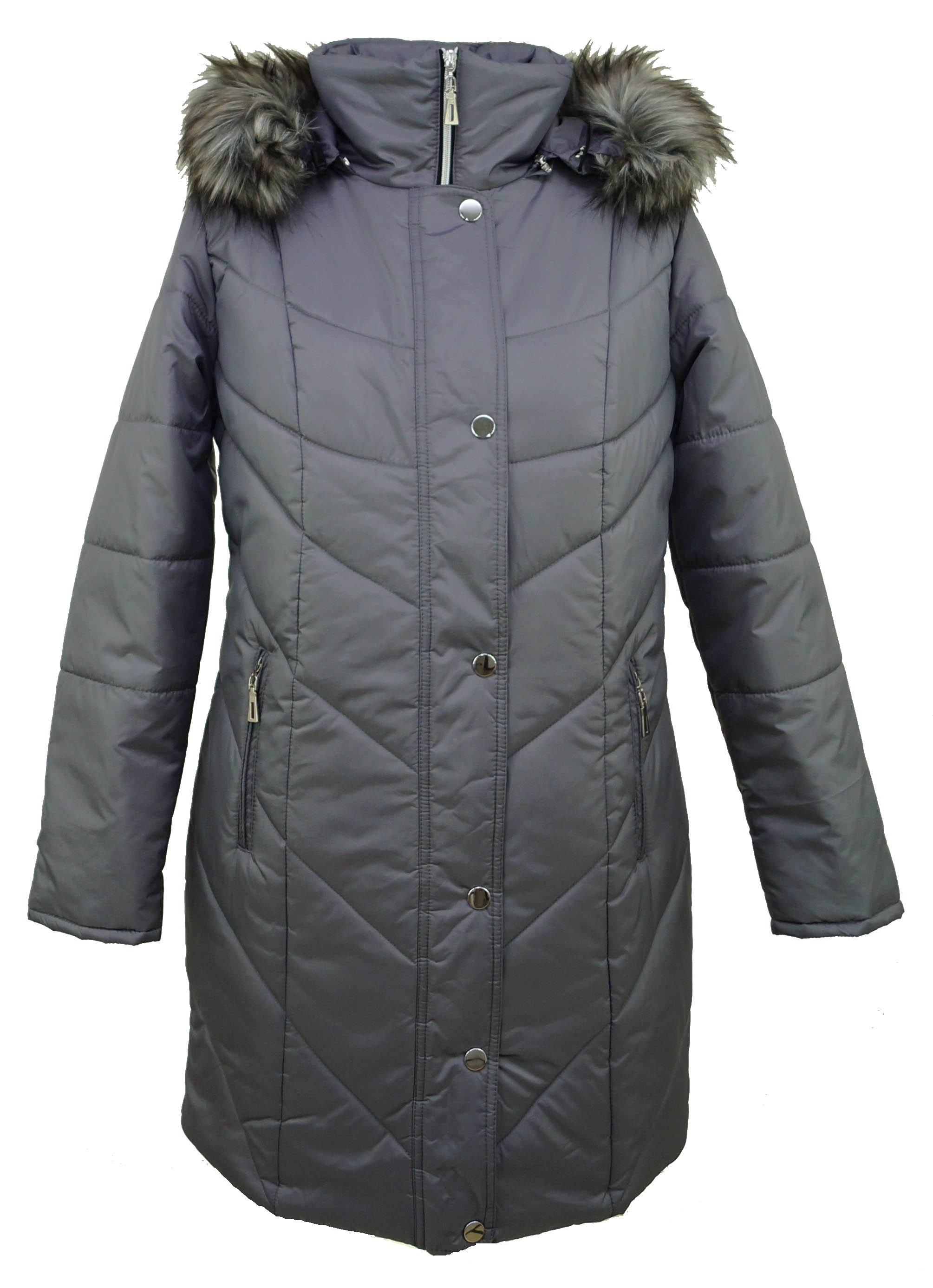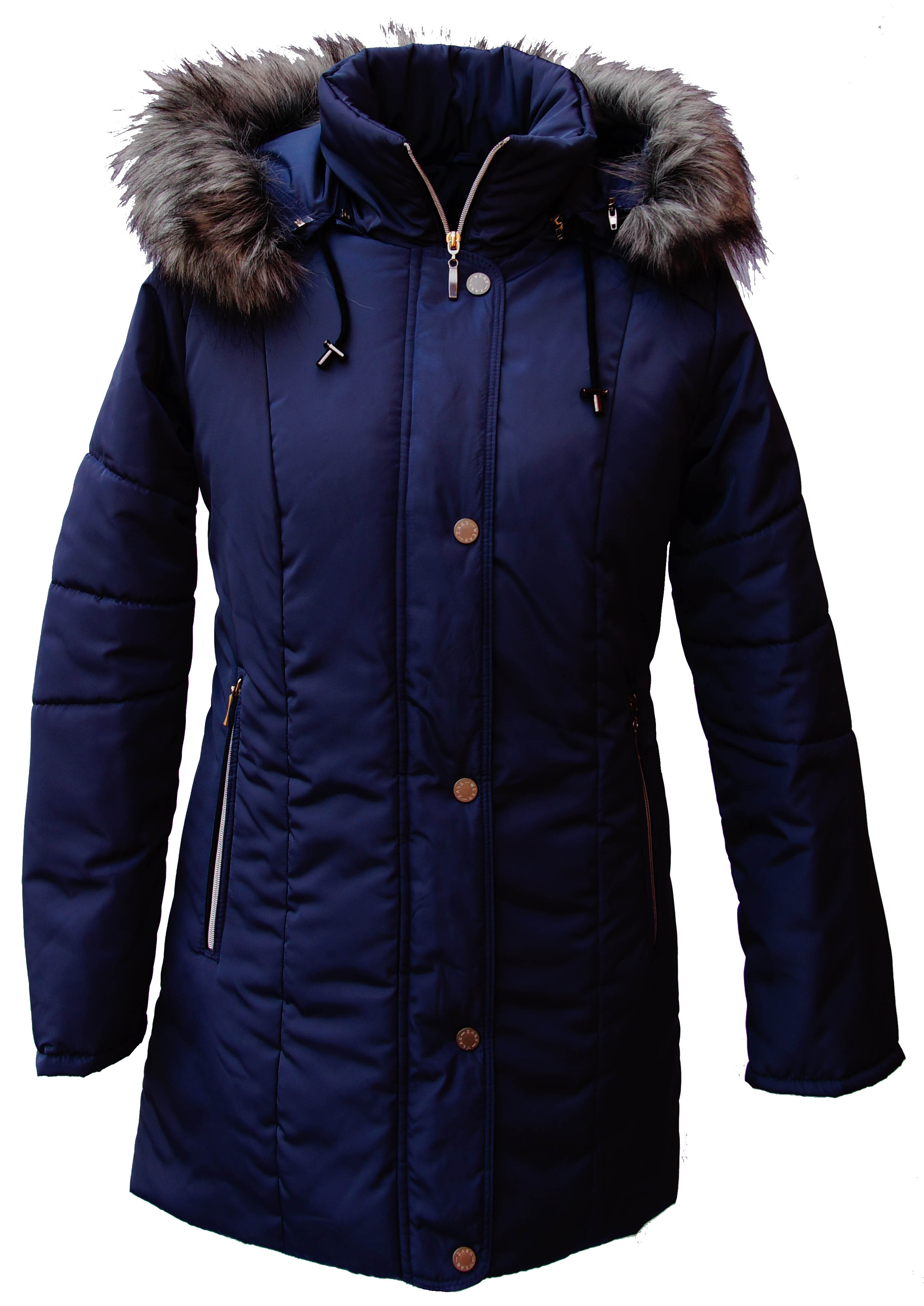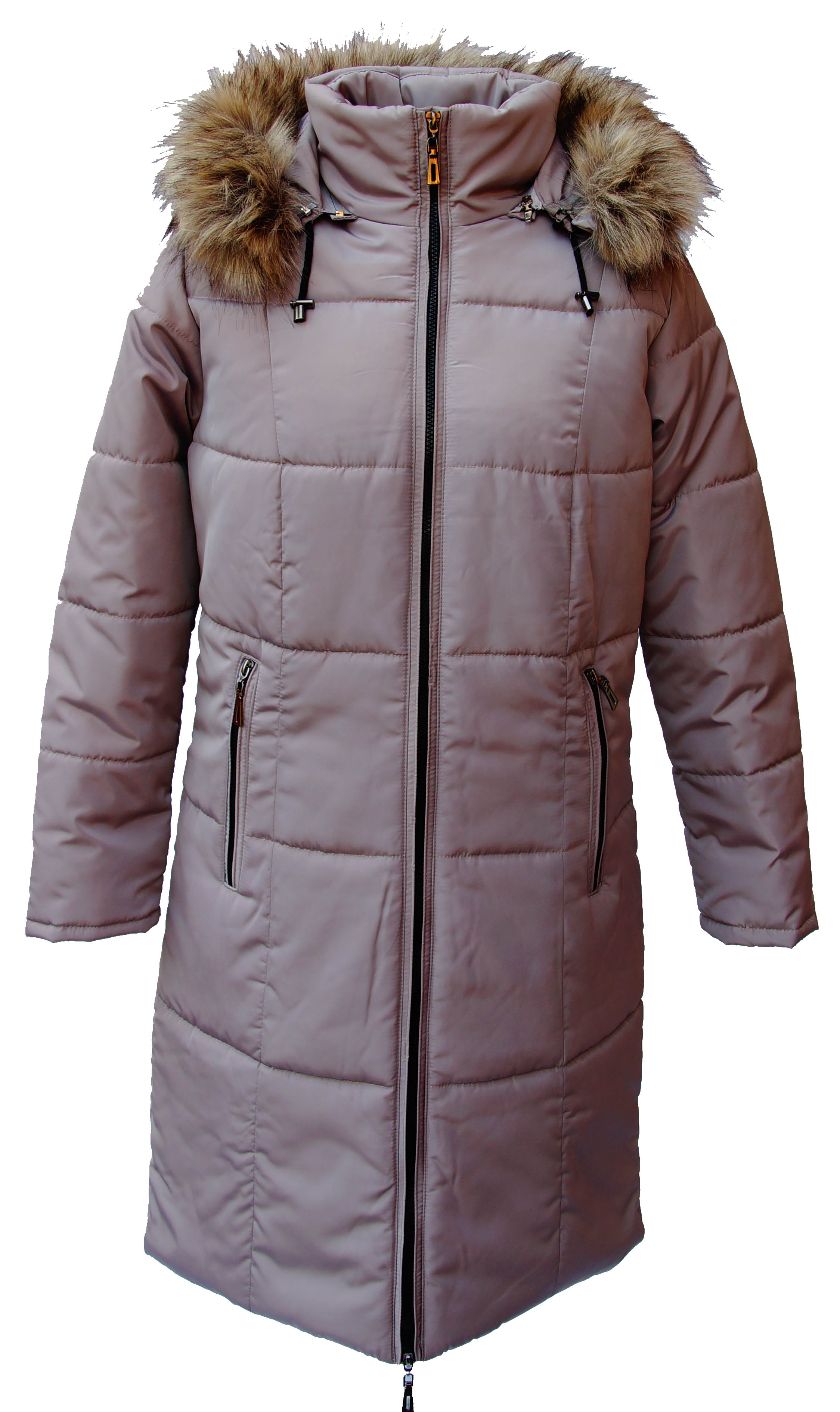Opis: "Jola-2"-Kurtka zimowa długość do połowy uda, posiadająca odpinany kaptur i kieszenie zapinane na zameki błyskawiacze, jest możliwość osobnego odpięcia liska.